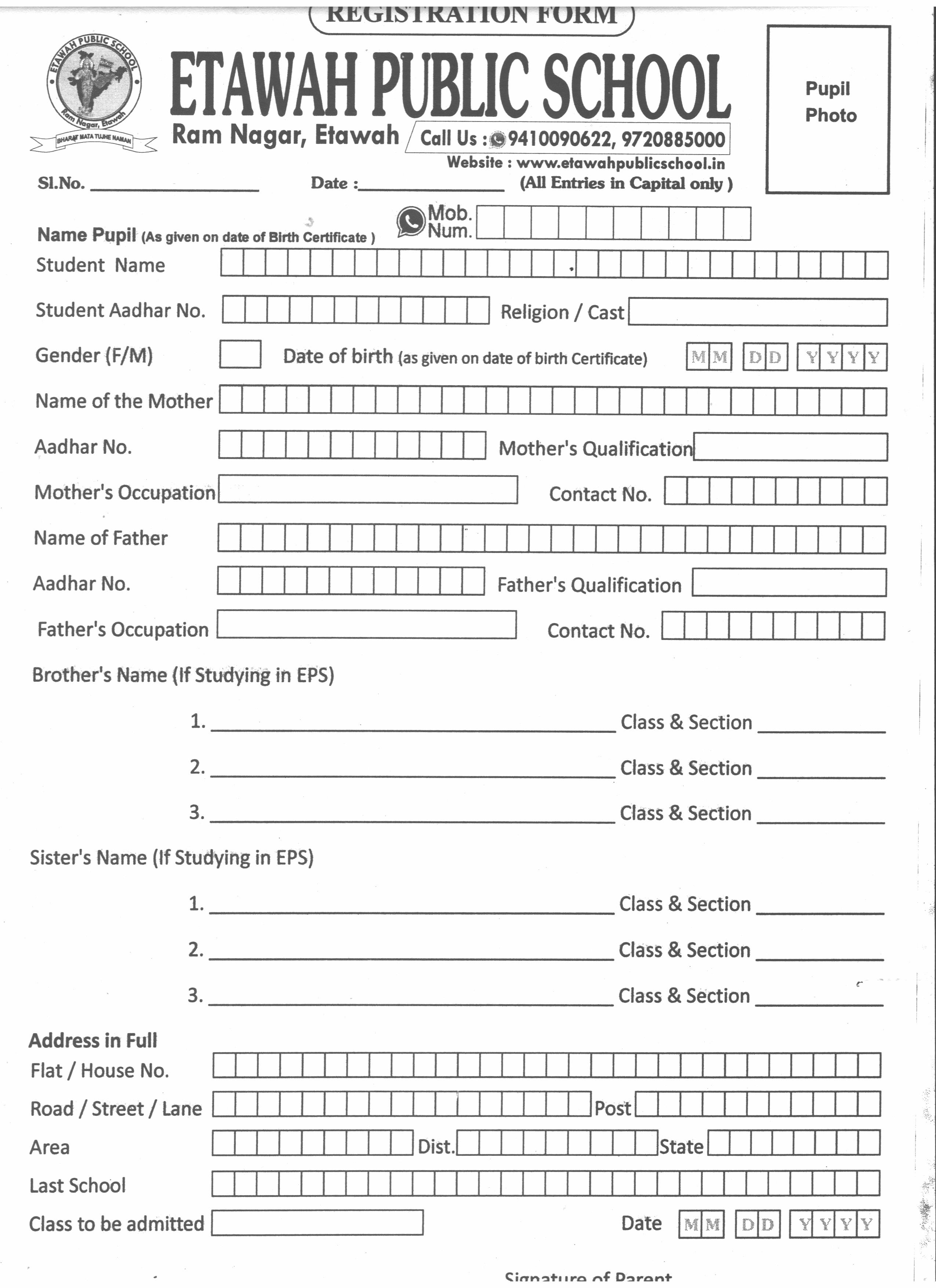 We thank you for your interest in enrolling your child at Etawah Public School. As your child grows and develops, one of the most important decisions you make as a parent is the selection of the right school for yourchild.....